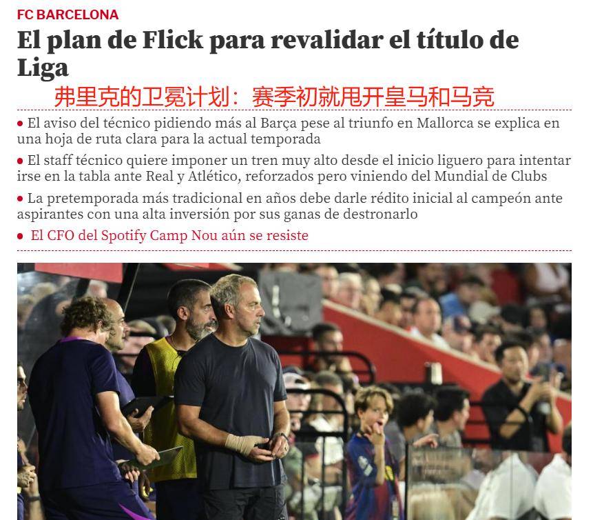 世界体育报指出,进入巴萨的第二年,弗里克希望避免“11月阴影”的重现。因此,从赛季伊始,他便强调全队需保持100%的专注度,避免出现去年那些仅拿5分的糟糕表现,这样皇马和马竞就不会给巴萨反超的机会。